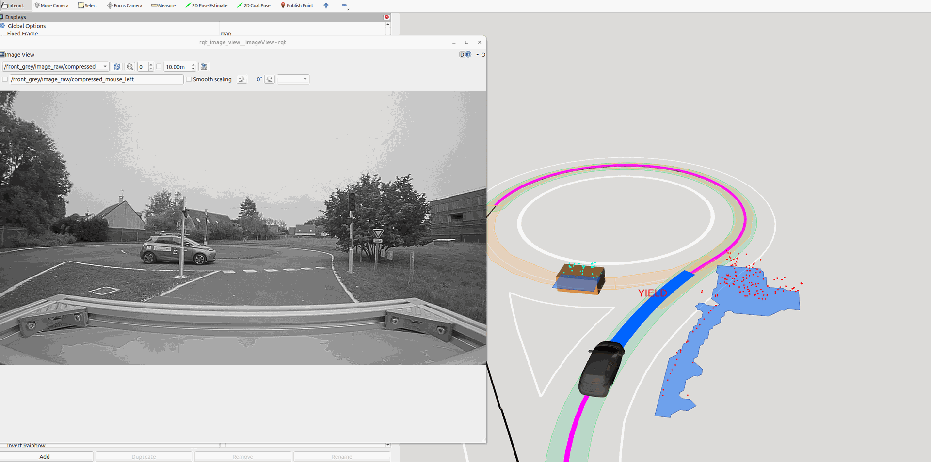 On the left is the camera image showing the driving situation. Note that the camera is not used for detection.