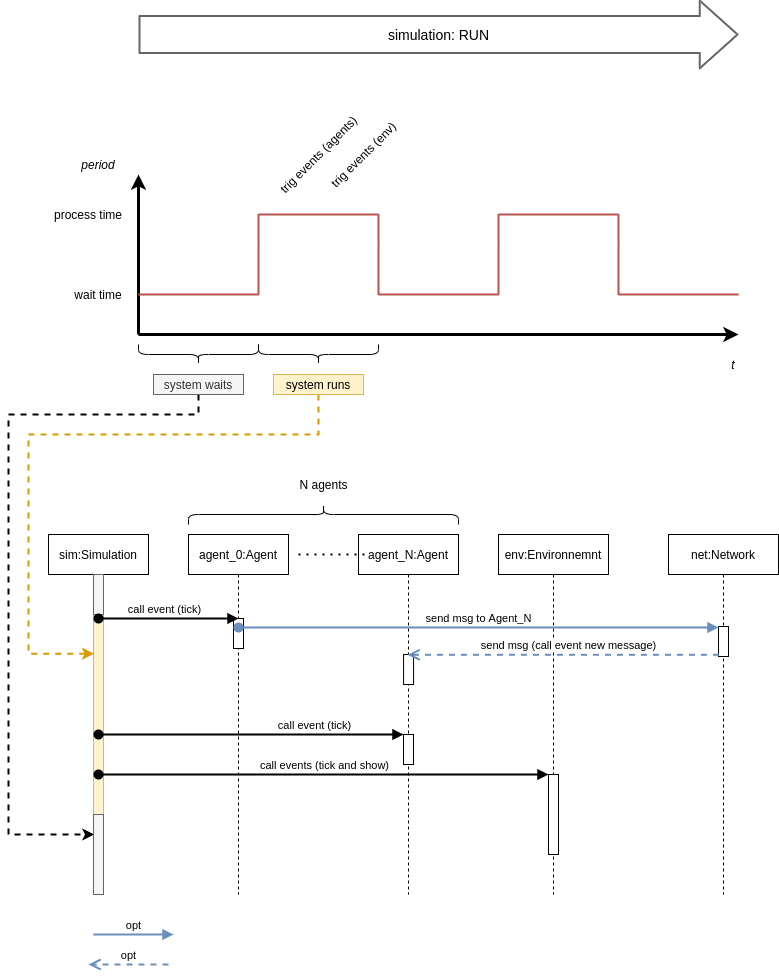 - Agent: reacts to messages, signals, and simulation ticks