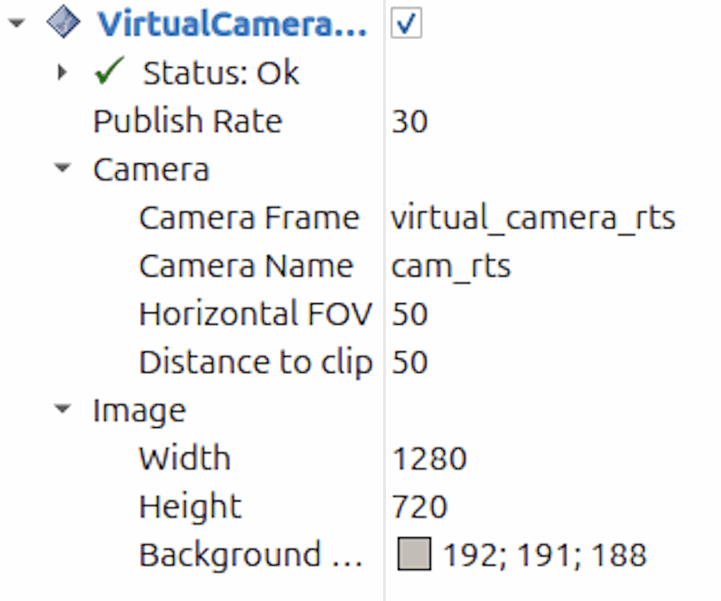 This virtual camera functions as a ROS 2 image publisher, continuously providing images from a configurable point of view.
