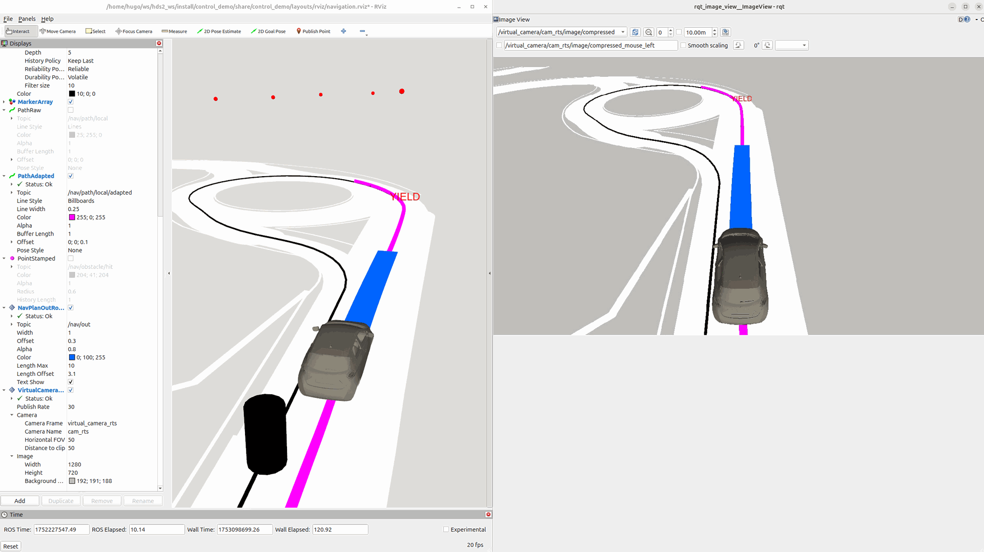 - I must keep the window and RViz view in the same place.